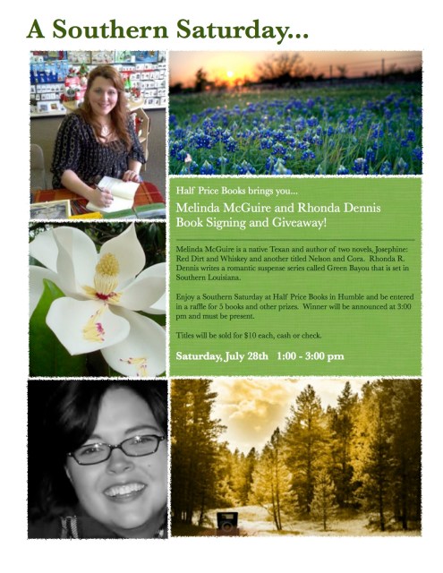 Come meet Melinda McGuire, author of Josephine: Red Dirt and Whiskey and Nelson and Cora – The Beginning, along with Rhonda Dennis author of the Green Bayou Series.