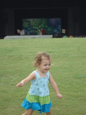 Part way through the very excellent play that I did not want to disrupt, kiddo got the urge to run. Cinderella still going strong in the distance.