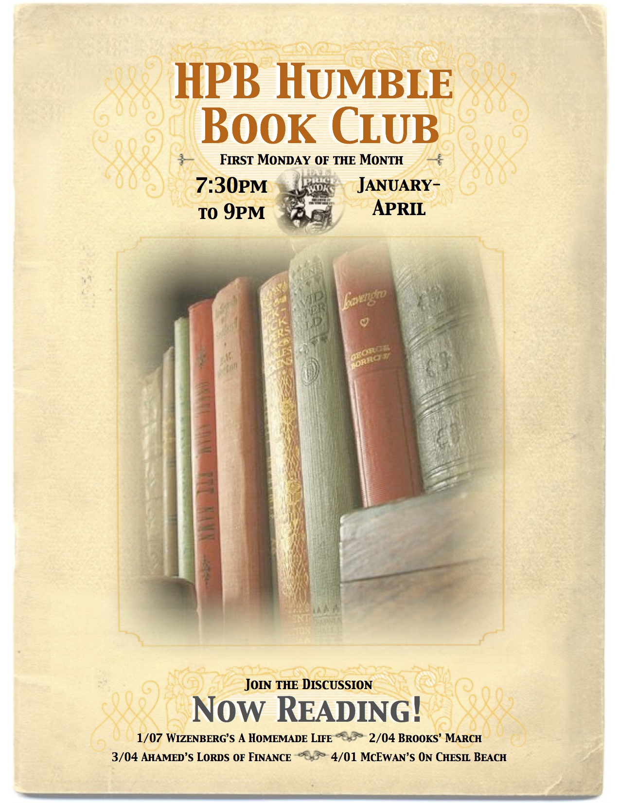 Looking to expand your reading pleasure? Join the discussion at our HPB Humble Book Club. We meet the first Monday of each month from 7:30 to 9 pm.