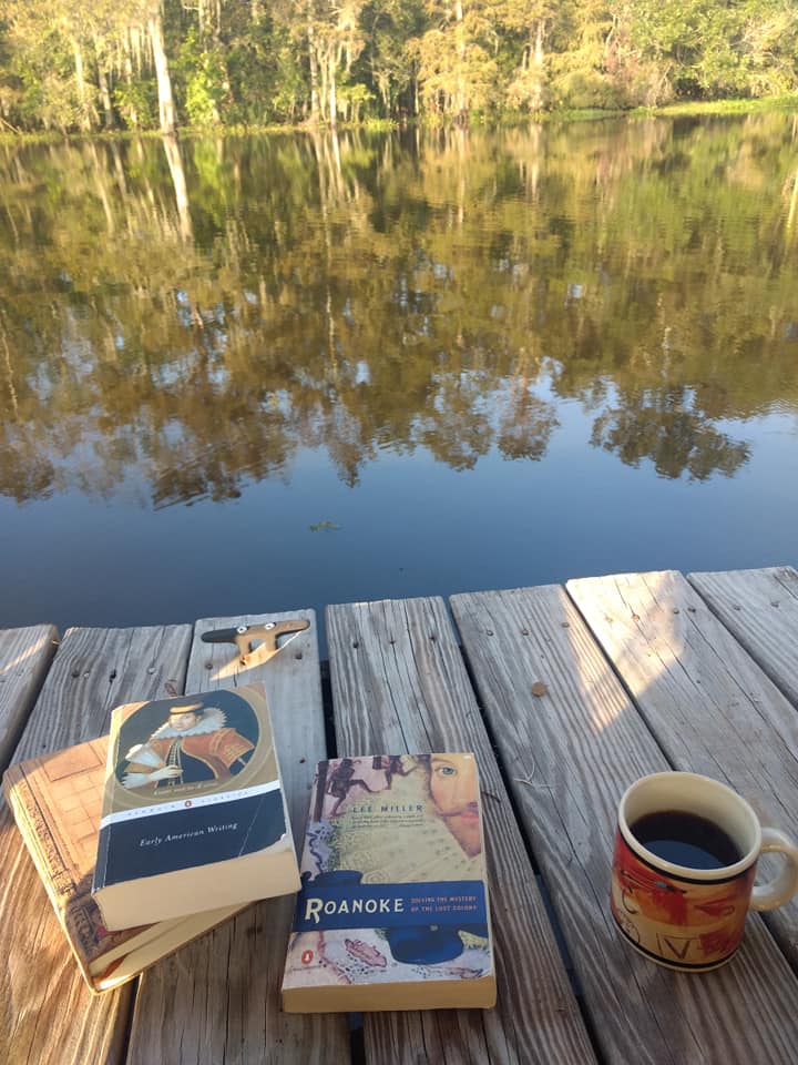 I read Lee Miller’s book and found it completely enthralling. As a homeschool family, we pick up and take our studies pretty much everywhere, and the week of Roanoke we had the luxury of spending on the Atchafalaya Basin. The only thing that could have been more perfect would have been if we had been in the Virginia and North Carolina swamps and beaches instead of the Louisiana ones––but the ambiance for the unraveling of a sixteenth century crime was perfect.