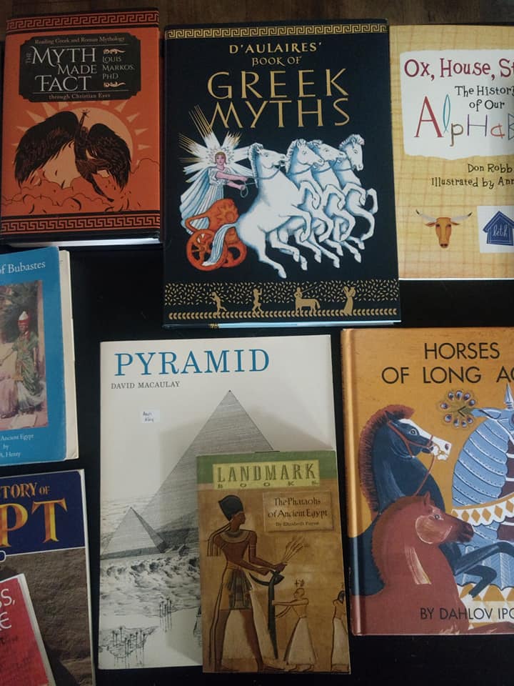 Meanwhile, we were also re-reading Susan Wise Bauer’s Story of the Wold Volume One for the third time, reading Story of Civilization for the first time, plucking our way through the Usborne Encyclopedia of the Ancient World, reading the Old Testament, and for good measure added a plethora of picture books I had on hand from the last time we studied the ancients.