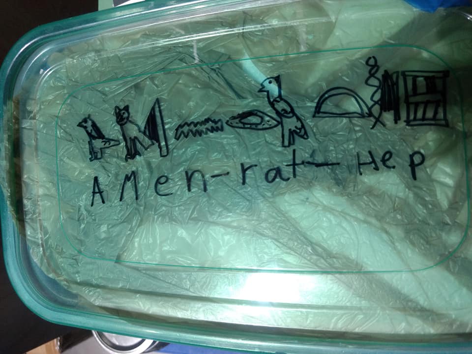 I also love David MacCauley books and we read Pyramid. Kiddo does *not* love David MacCauley books, which is unfortunate because I think I own them all. She preferred diving into Mummies, Tombs, and Treasure and the Magic Tree House Research Guide: Mummies & Pyramids. Side note to the Magic Tree House books: Although the fiction books are overly simplistic and quickly outgrown, we have found that the research guides last all of the elementary school years and are revisited often. We will keep the research guides long after the fiction series is purged, I believe. As homeschool eccentrics this study coincided with our anatomy studies in science. The kids got the chance to observe a profession necropsy of a rat and later Kiddo tried her hand at mummifying the spare dead rat. AmenRAThep still lies in our garage buried in salt in his intricately decorated plastic tomb. An expository essay on the mummification process ensued. More tapping away at my now “vintage” typewriter… More revisiting all our favorite picture books (Mummy Cat by Ewert just never gets old and Tutankhamen’s Gift is lovely) as well as the HMNS for the Ramses exhibit.