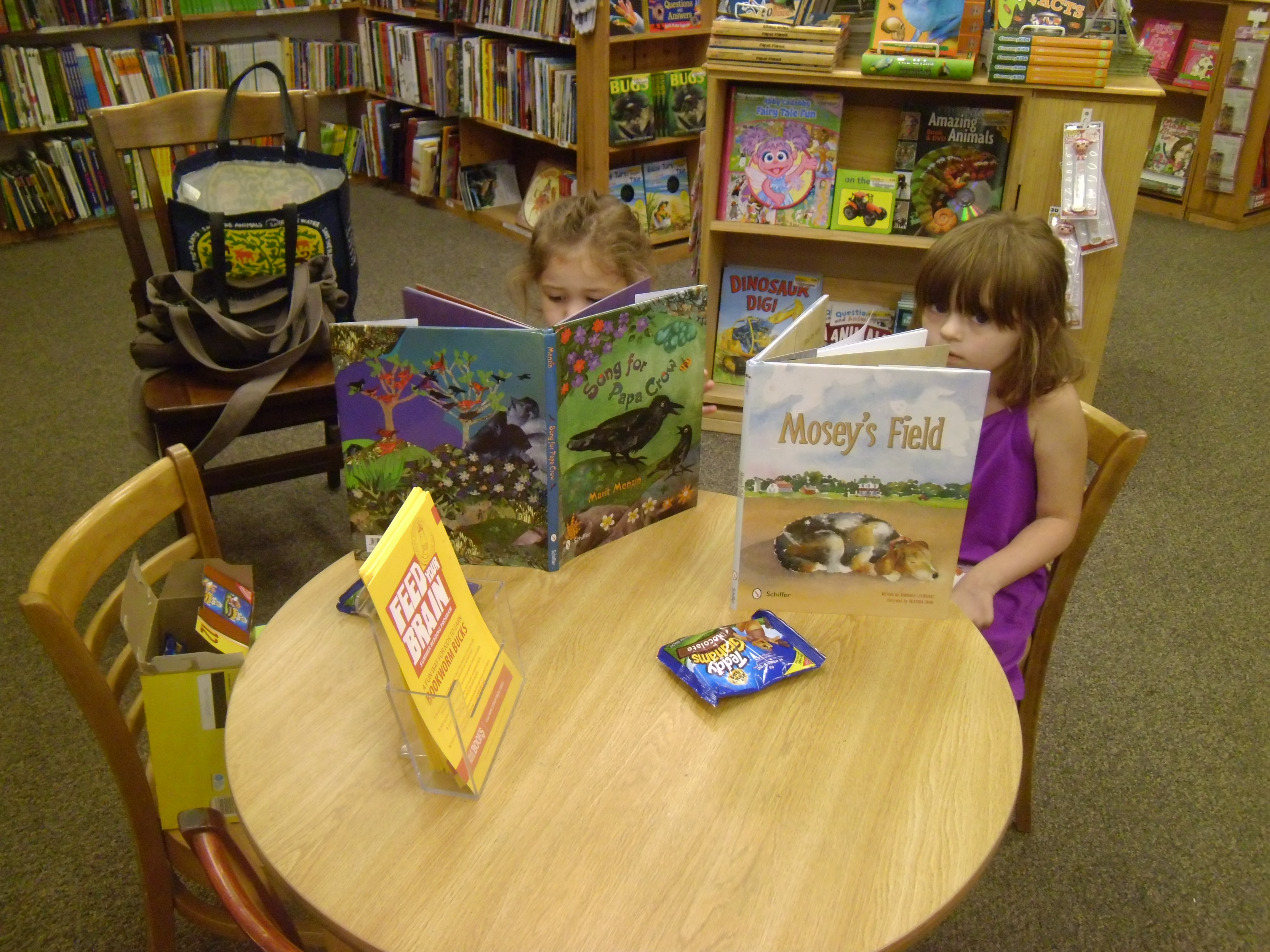 Every Wednesday during the summer I make an appearance at Half Price Books Humble, 10:30 am sharp. I make an announcement over the intercom – NOT my forte – place snacks on the children’s table, and pick out stories to read out loud to whoever arrives.