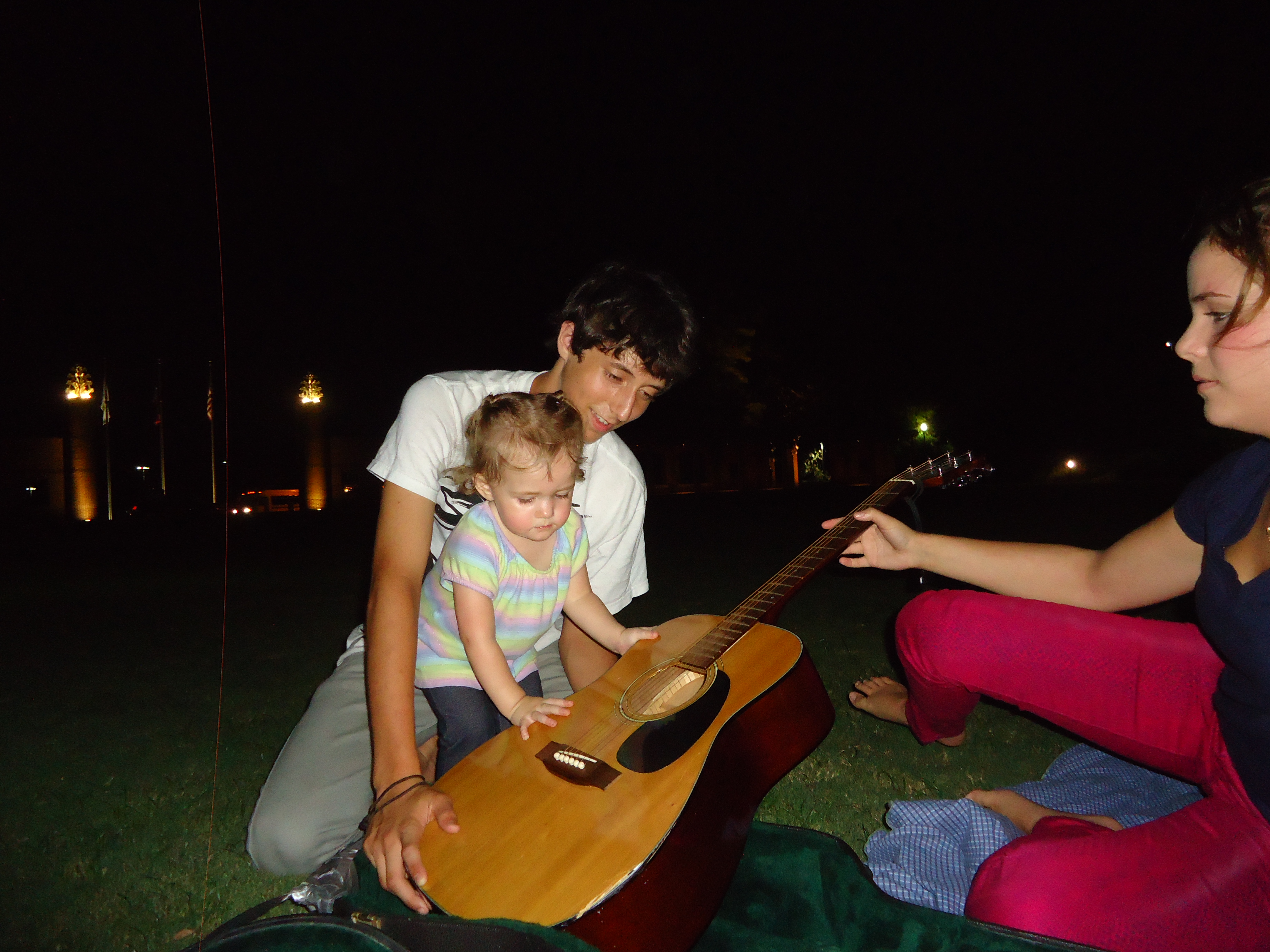> Kiddo making friends with Guitar playing strangers; these two lovely people were incredibly sweet considering my daughter totally invaded their date night.