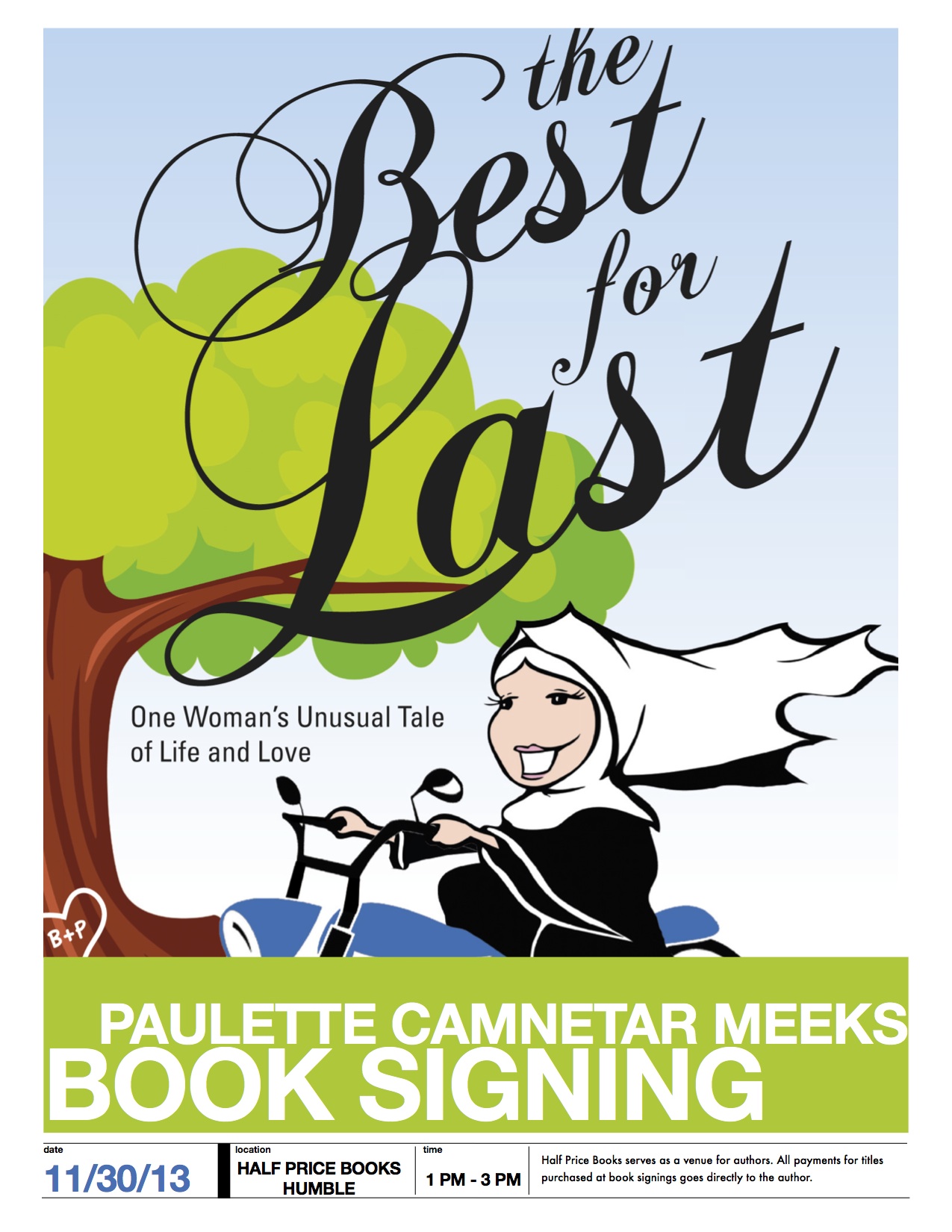 Paulette Meeks stood at the table of books at the bookstore after her signing, “Pick one you think you’ll like.” She is in her seventies, has several titles out, and has recently become a writing machine though she’ll tell you, “I never thought I’d be a writer, but God gave me these stories.”