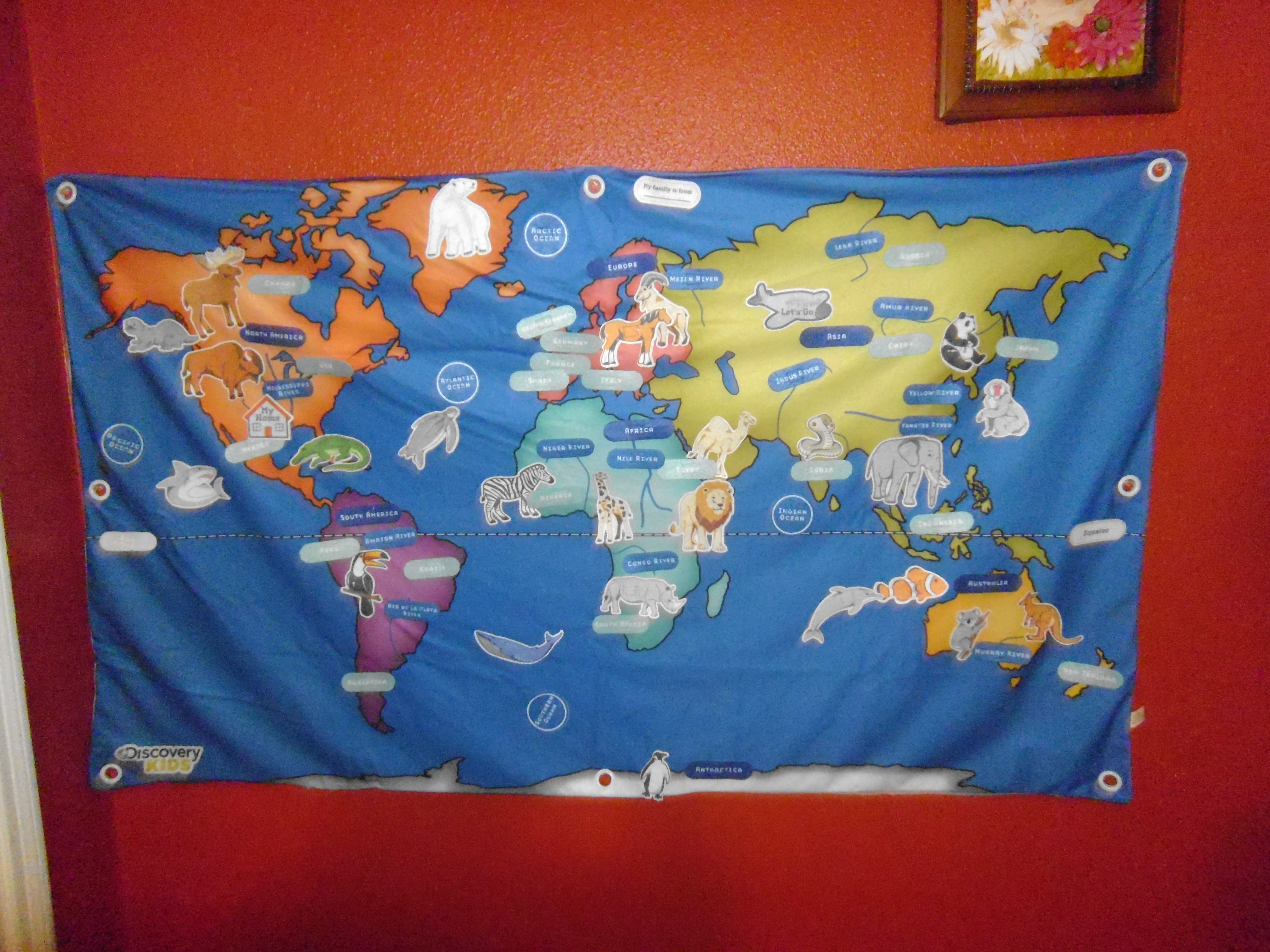 Kiddo really loves looking at the pictures of all the animals. From identifying the baby bears to asking me what “those things are on him” hanging off the lion (his testicles), we’ve had a full two weeks learning about different kinds of predators and their environment. She finds Africa vs. the Arctic fascinating and is now able to identify the two places on the map.